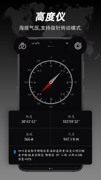 4.全能指南针应用程序能够实时更新并适应用户位置的变化,以确保提供最新准确的方向。