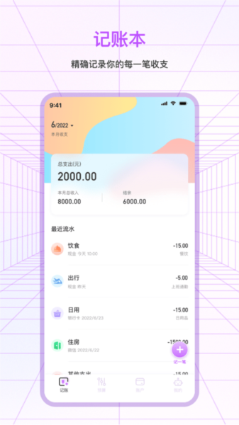 1. 分类记账:根据住房、日常、出行、饮食等场景预设分类,帮助用户快速记录消费信息。