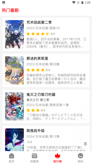 NTHLB动漫官方版是一款非常好用的动漫播放软件,进入软件之后,用户将会看到四个区域,分别是首页、排期表、排行榜以及我的,每个区域中都有各自独特的内容,就拿排期表区域来讲,在排期表区域中用户可以快速知道今天乃至这个星期会更新哪些动漫作品,方便自己可以第一时间观看到。软件上的动漫作品超级多,不管是以前经典的动漫作品,还是最新推出的动漫作品,软件都是一应俱全的,可以轻松满足用户对动漫作品的观看需求,而且全都可以免费观看哦!另外,软件支持投屏功能,可以将动漫作品投屏到电视机上,享受更加震撼的观看体验。