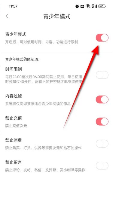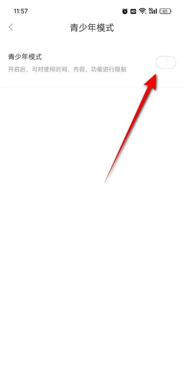 5、将“青少年模式”旁的小滑块点亮即可开启