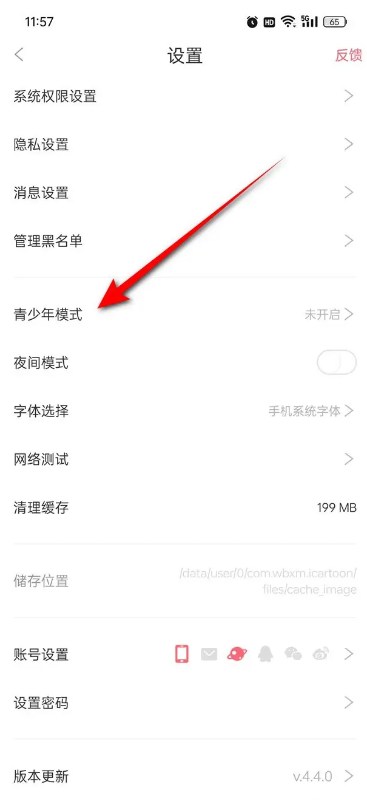 2、点击“青少年模式”