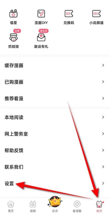 1、打开看漫“我的”页面,点击“设置”图标进入