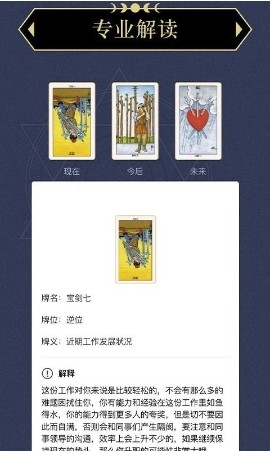 塔罗星盘为您提供专业的预测服务。给出专业的占卜结果和建议,根据你想查询的问题找出更多惊喜功能和体验。在塔罗占卜中,你可以测量你的财富,并祝愿你掌握自己的命运!为您提供专业的预测服务。感兴趣的小伙伴赶快下载最新的软件版本吧。