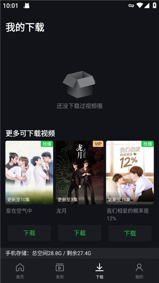 3、而且首页还有下载功能,大家可以在这里查看自己的下载缓存视频。