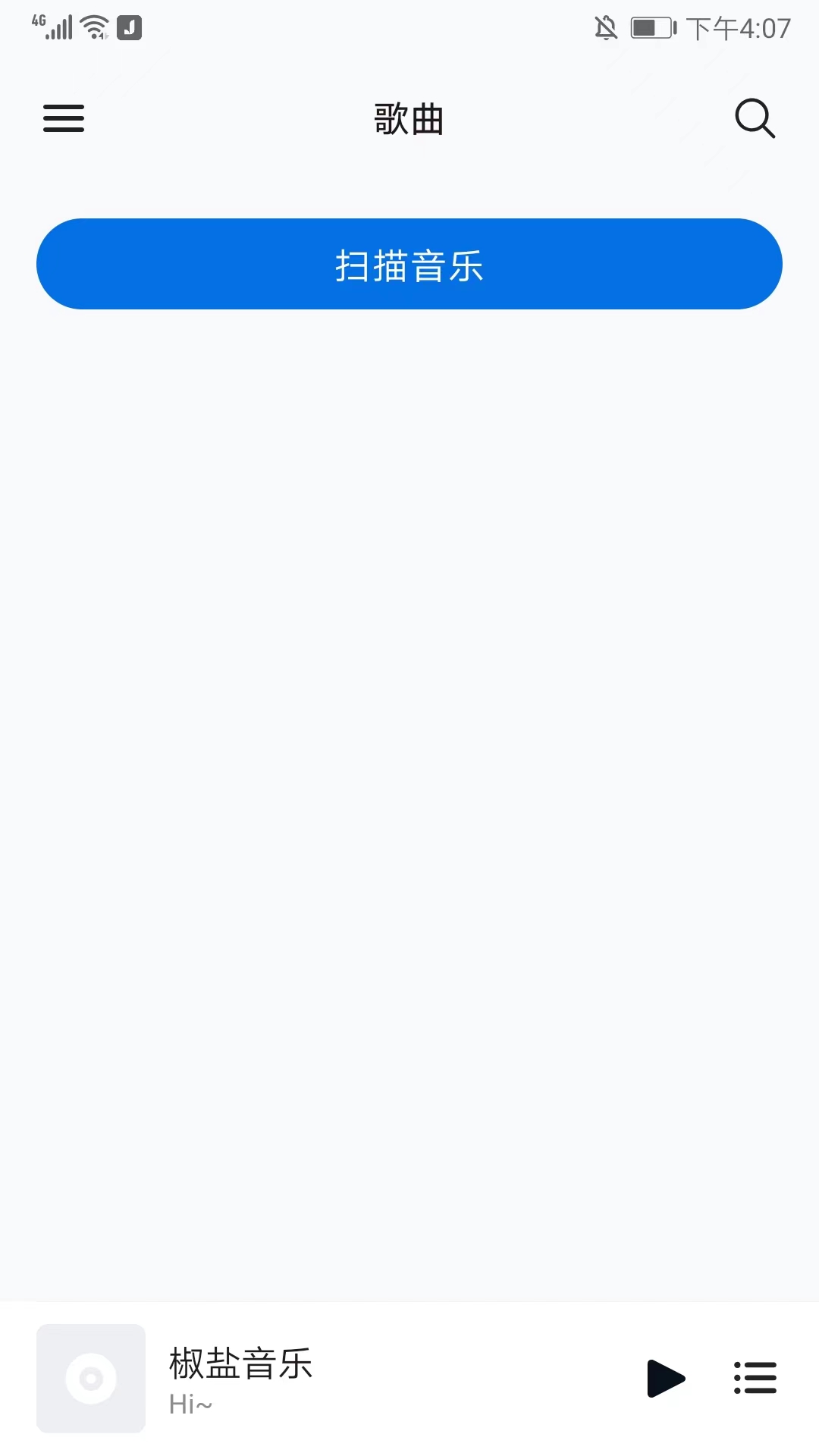 4、进入歌曲界面,我们可以扫描当前设备中的所有音乐,也可以通过右上角的【放大镜】图标进行音乐搜索,