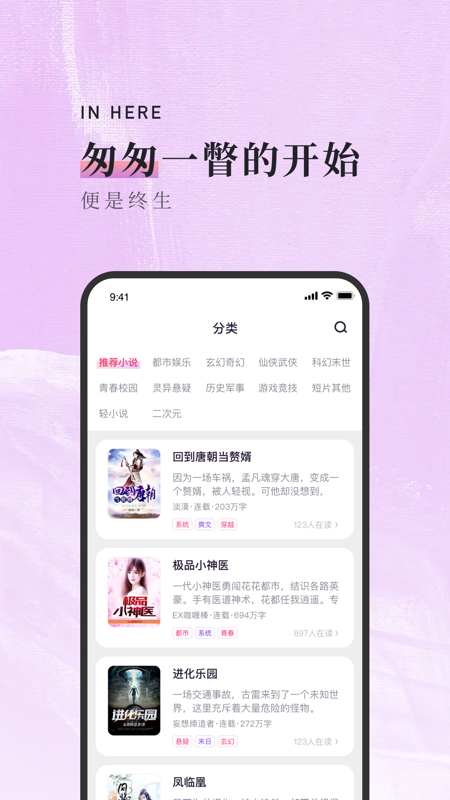2. 分类浏览:按照类型分类,快速找到你感兴趣的小说。
