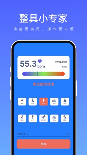 整具小专家是一款集合多功能实用小工具的手机工具小助手,旨在为用户提供更加便捷、优质、高效的手机使用体验。这款APP不仅集合了监视器、计时器、状态展示等实用工具,还具备心跳记录等健康监测功能,让你随时随地掌握自身状态。同时,它还能有效节省手机空间,让你的手机更加轻便高效。