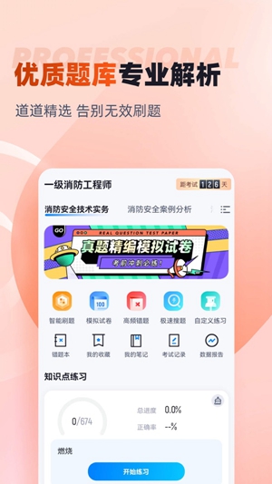 2、设计风格专业,符合消防工程师备考的学习需求。